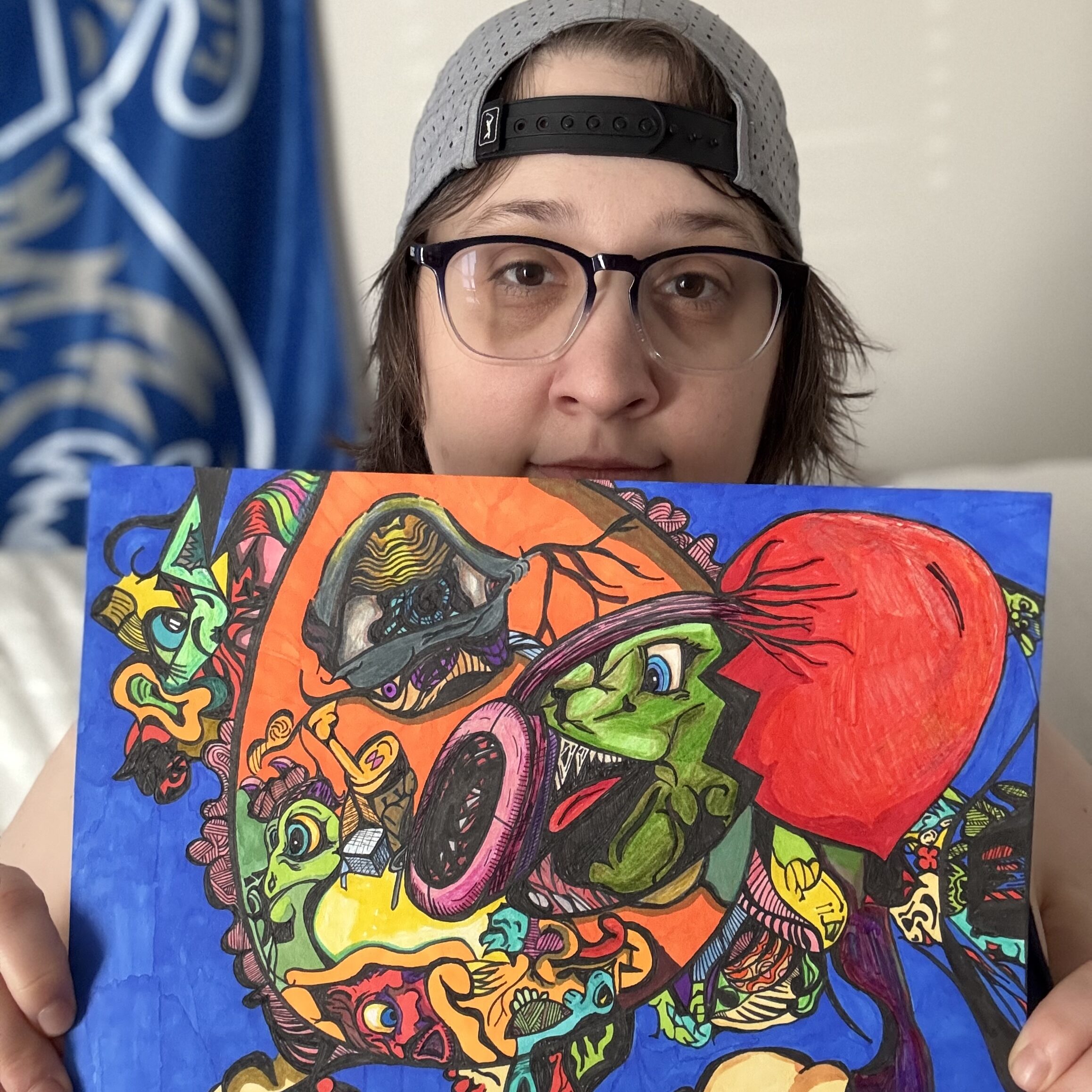 Hey! I’m Sim. I’m an artist who draws by hand using markers, ink, and colored pencils. My art features a whimsical aesthetic, with a vibrant color scheme. My stickers and buttons are my top sellers, but I do offer originals, mini-originals, prints and bookmarks as well.